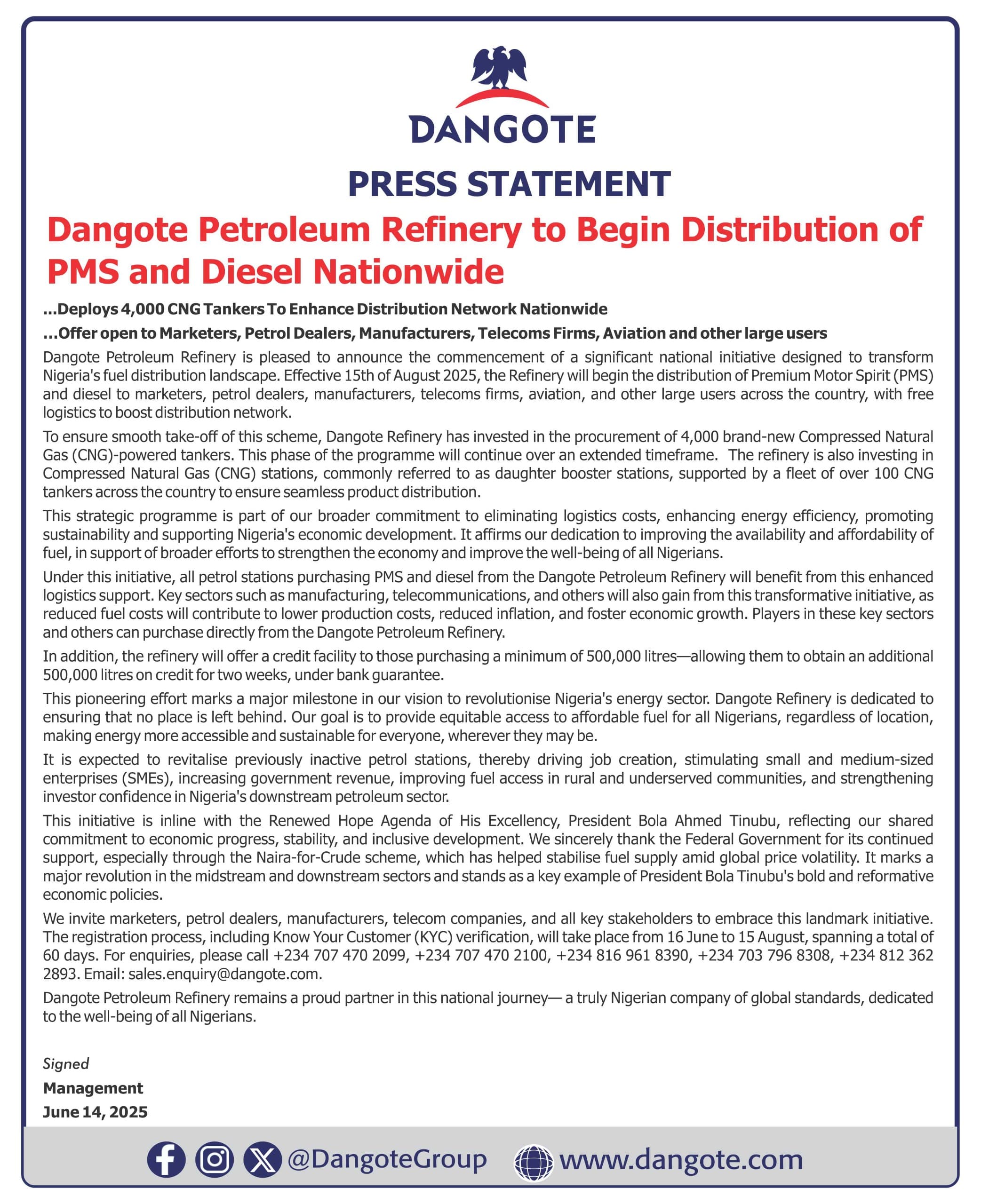 Email: communications@dangote.com